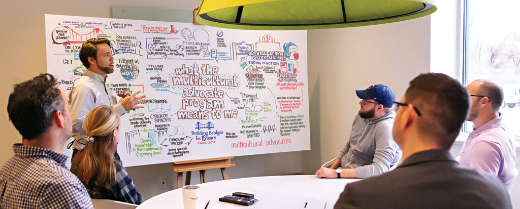 We will create a live graphic meeting recording to capture ideas and connections, providing a tool for community partners to use to work together on future initiatives.